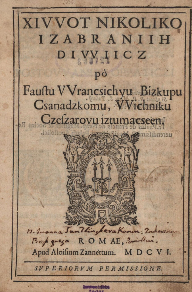 - Tako Bobrowski piše Kopitaru sljedeće: „To je prva tiskana knjiga u slavenskom jeziku koja je ugledala svjetlo. Ali nepoznato gdje? Možda u Veneciji?“ Više u: Kulundžić, Z. (1960.). Kosinj kolijevka štamparstva slavenskoga juga. Zagreb: Vlastita naklada, str. 15.